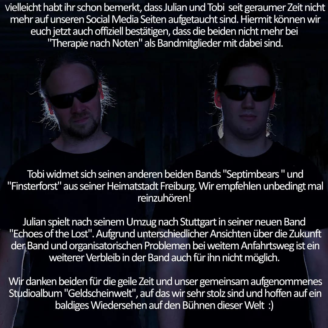 Seit Feburar 2024 ist es offiziell, dass Tobi und Julian nicht mehr in der Band sind.
